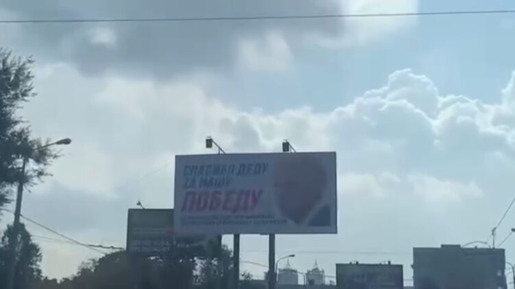 В обращении к Джо Байдену говорится "Спасибо деду за нашу победу", а Урсуле фон дер Ляйен предлагают "выпить с горя". При этом на баннерах с главой Еврокомиссии ошибка в слове "вхождение". На плакате написано "вжождение".