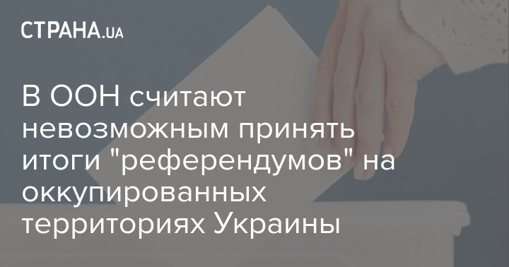 В Организации Объединенных Наций (ООН) заявили, что не считают возможным принять итоги так называемых "референдумов", прошедших на оккупированных РФ территориях Украины.