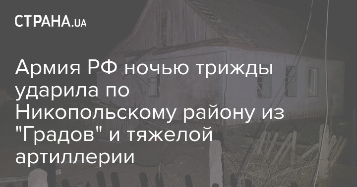 Российские войска ночью 30 сентября снова обстреляли Никопольский район Днепропетровской области. Обстрел велся из тяжелой артиллерии и "Градов".
