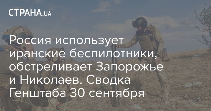 В Генеральном штабе Вооруженных сил Украины опубликовали оперативную сводку с фронта по состоянию на 18:00 30 сентября. Сообщается, что российские войска ведут обстрелы Запорожья и Николаева и активно применяют иранские дроны.