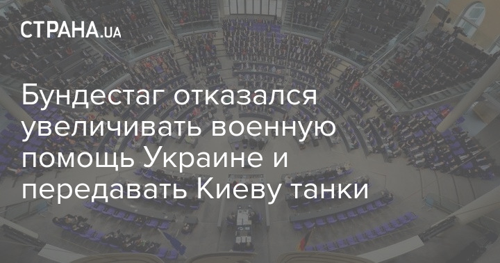 Депутаты немецкого Бундестага отклонили предложение блока правоцентристских партий в Германии "Христианско-демократический союз Германии" и "Христианско-социальный союз в Баварии" (ХДС/ХСС) об увеличении военной поддержки Украины и организации поставок боевых танков.