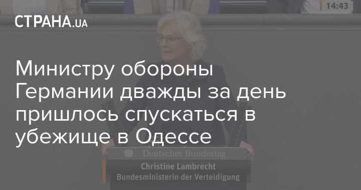 Во время пребывания в Одессе министру обороны Германии Кристин Ламбрехт пришлось дважды спускаться в убежище.
