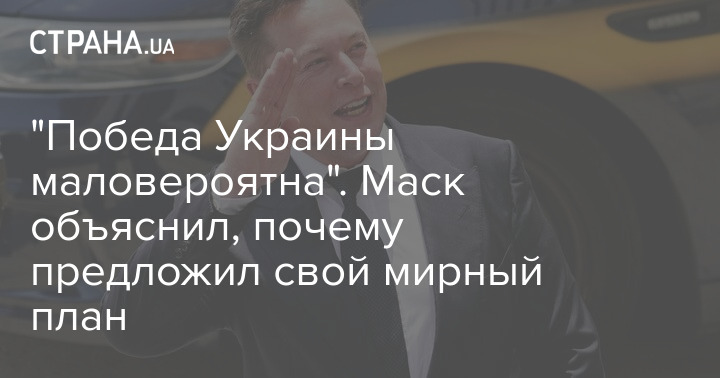 "Победа Украины маловероятна". Маск объяснил, почему предложил свой мирный план