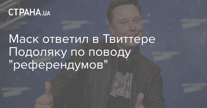 Миллиардер Илон Маск ответил советнику главы Офиса президента Украины Михаилу Подоляку, который задал ему вопрос, хочет ли тот легитимизировать псевдореферендумы, проведенные Россией на аннексированных территориях.