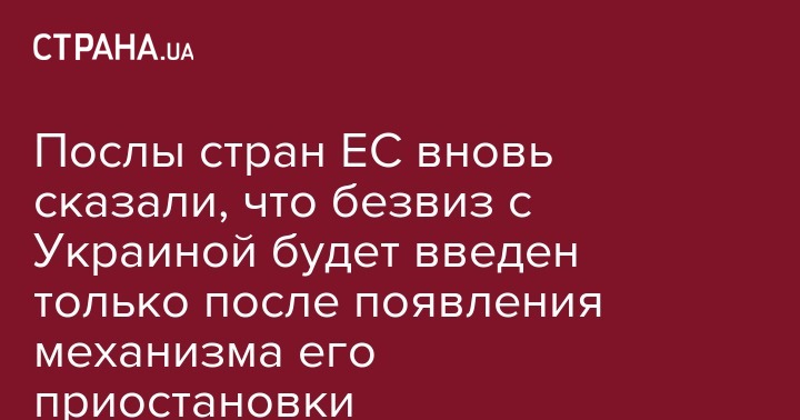 "Послы ЕС только что дали зеленый свет Совету ЕС для начала переговоров по либерализации визового режима с Украиной с Европарламентом. Но сначала должна быть договоренность по механизму приостановки безвизовых режимов для других стран", - говорится в сообщении.
