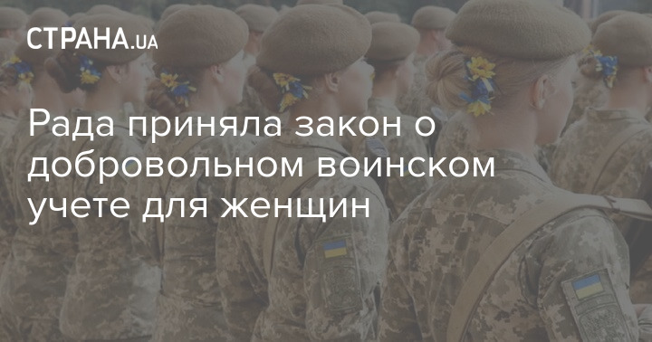 Верховная Рада приняла в целом закон №482 о добровольном воинском учете женщин. Согласно документу, женщины, имеющие медицинскую профессию или специальность, должны стать обязательно на военный учет. А женщины, имеющие специальность из перечня Минобороны, могут стать на учет по желанию.