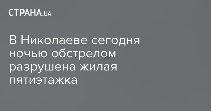 "После часа ночи Николаев массированно обстреляли. Есть попадание в пятиэтажный жилой дом. Два верхних этажа разрушены до основания, остальные - под завалами. На месте работают спасатели.