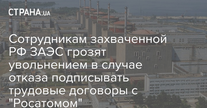 Сотрудникам захваченной РФ ЗАЭС грозят увольнением в случае отказа подписывать трудовые договоры с "Росатомом"