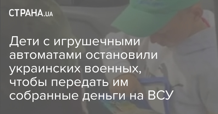 Дети организовали импровизированный блокпост с игрушечными автоматами и флагом Украины, чтобы собрать финансы на поддержку ВСУ. Когда они остановили машину с настоящими военными, то решили передать им собранные деньги. Однако мужчины в форме не взяли денег, а сами сделали вклад в "украинскую армию" и еще мальчику памятный сувенир - браслет на руку.