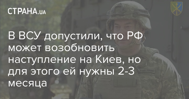 В ВСУ допустили, что РФ может возобновить наступление на Киев, но для этого ей нужны 2-3 месяца