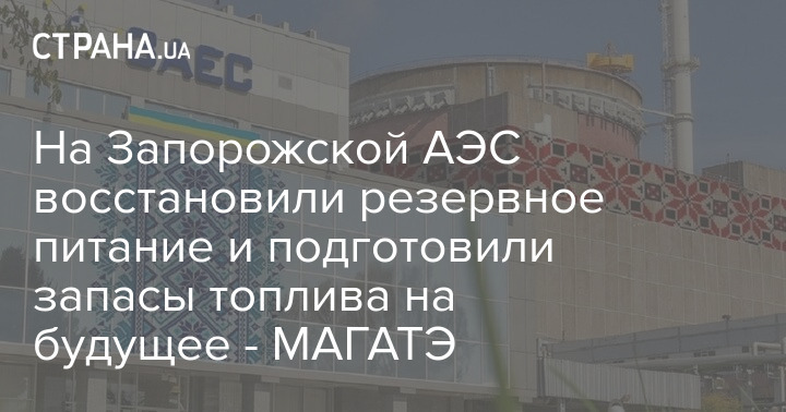 Резервное питание Запорожской атомной электростанции восстановлено. Об этом сообщает МАГАТЭ в своем официальном twitter-аккаунте.