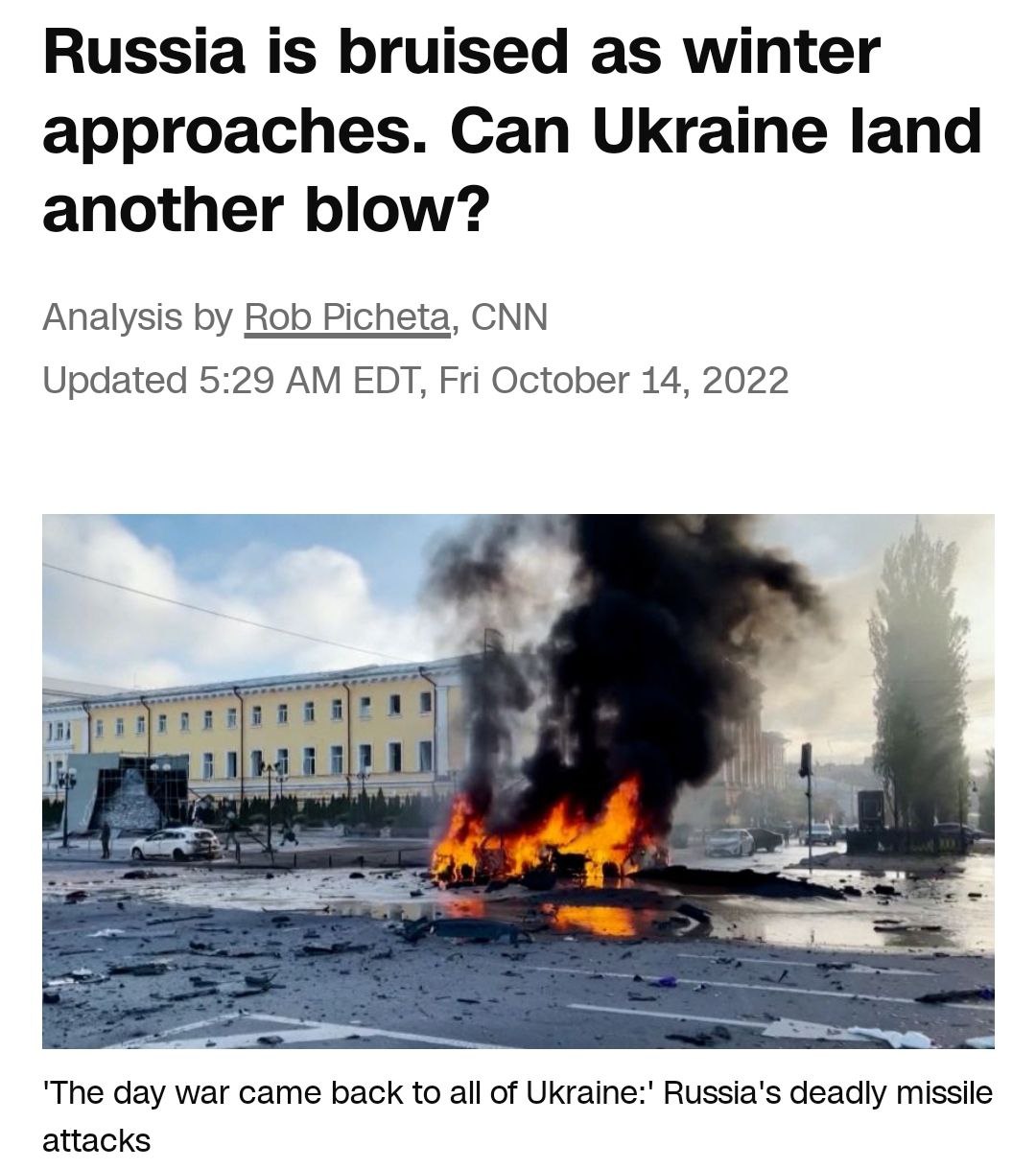 11:03 Каждая сторона войны в Украине стремится нанести еще один удар до наступления холодов, поэтому следующие недели будут иметь жизненно важное значение, предсказывает аналитик CNN Роб Пичета.