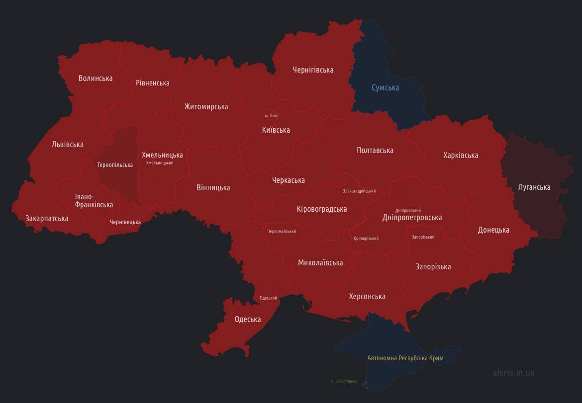 Воздушную тревогу объявили сразу в нескольких областях Украины