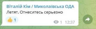 12:39 Глава Николаевской области говорит о летящих ракетах. Призывает отнестись к воздушной тревоге серьезно.