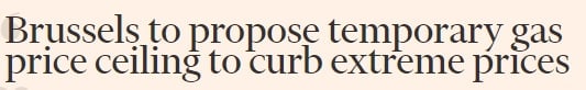 Евросоюз предложит временный потолок цен на весь импортируемый газ (то есть, не только российский) "чтобы обуздать экстремальные цены".