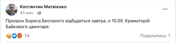 На 69-м году жизни умер экс-нардеп Борис Беспалый. Похороны состоятся завтра, 18 октября, в 10:00 в крематории Байкового кладбища.