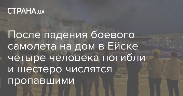 После падения бомбардировщика Су-34 на жилую многоэтажку в Ейске (Краснодарский край) шесть человек числятся пропавшими без вести. Кроме того, известно уже о четырех погибших и 25 пострадавшем.