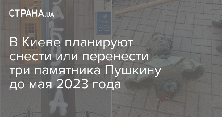 Киевсовет планирует снести или перенести три памятника русскому поэту Александру Пушкину до мая 2023 года. Об этом сообщают Украинские новости со ссылкой на ответ столичной мэрии.