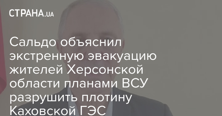 "Глава" Херсонской "администрации" Владимир Сальдо объявил об эвакуации "Бериславского, Белозерского, Снигирёвского и Александровского муниципалитетов" области.