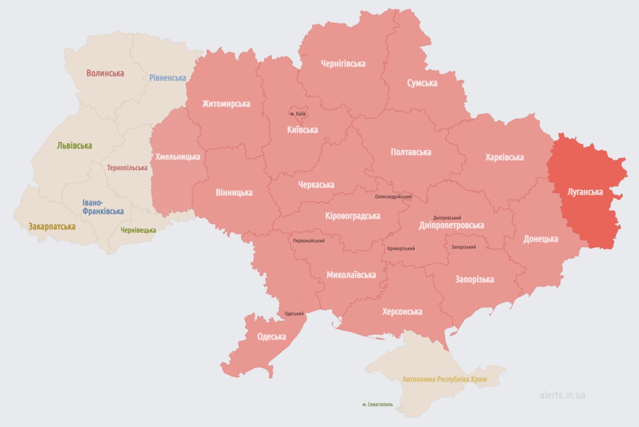 06.20 Карта тревог на сейчас. Тревога только в Луганской области.