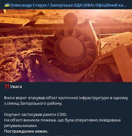 Напомним, накануне войска РФ атаковали Запорожье. Дрон-камикадзе попал по объекту инфраструктуры, ракета - в складское помещение.
