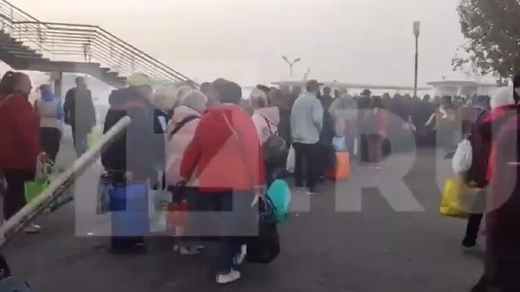 Херсонцев эвакуируют на левый берег на теплоходах. Скриншот видео росСМИ
