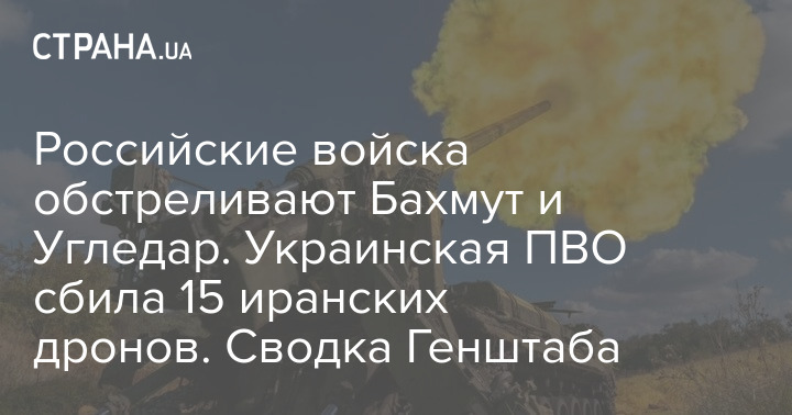 В Генеральном штабе Вооруженных сил Украины опубликовали оперативную сводку с фронта по состоянию на 18:00 20 октября. Сообщается, что российская армия обстреливает Бахмут и Угледар, а украинская ПВО за день сбила 15 иранских дронов.