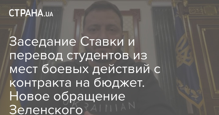 Заседание Ставки и перевод студентов из мест боевых действий с контракта на бюджет. Новое обращение Зеленского