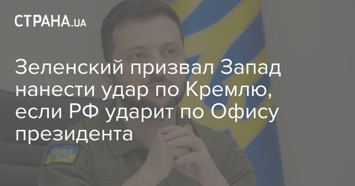 Президент Владимир Зеленский призвал Запад нанести удар по Кремлю, если Россия нанесет удар по Офису президента в Киеве.