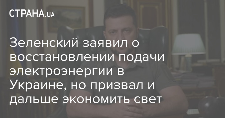 Зеленский заявил о восстановлении подачи электроэнергии в Украине, но призвал и дальше экономить свет