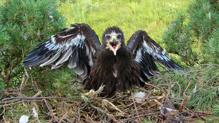Чернобыльский радиационно-экологический биосферный заповедник опубликовал фото редкой гнездовой птицы, занесенной в Красную книгу Украины. Это хищный большой подорлик.