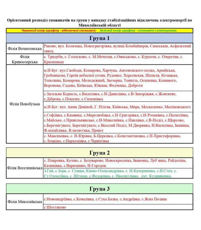 Сегодня отключения света начались и в Николаевской области. Они будут происходить у абонентов 1-5 групп очереди.