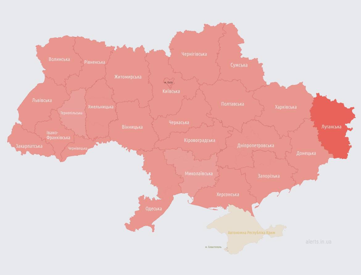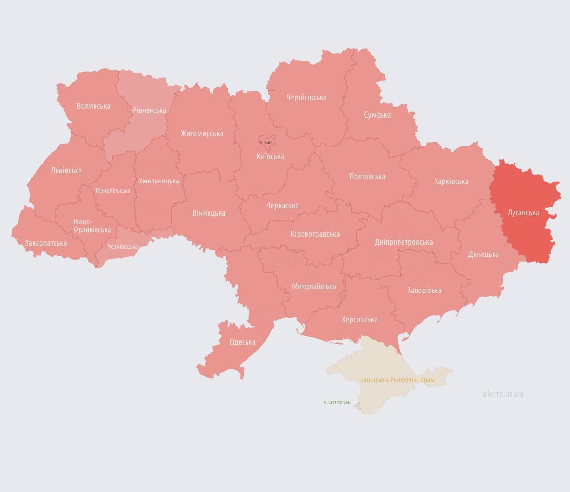 15.20 Воздушная тревога во всех областях Украины кроме Крыма.