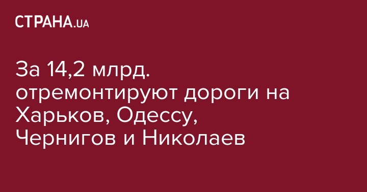 За 14,2 млрд. отремонтируют дороги на Харьков, Одессу, Чернигов и Николаев