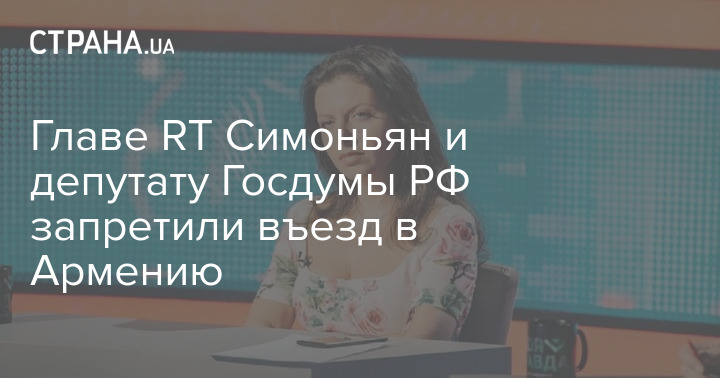 Главе RT Симоньян и депутату Госдумы РФ запретили въезд в Армению