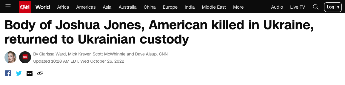 Опознали по татуировкам. Телеканал CNN рассказал, как вернули тело американца, погибшего в Украине