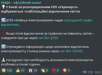 Если свет не появился после отключения, предлагают обращаться в чат-бот ДТЭК. (Доступен по ссылке.