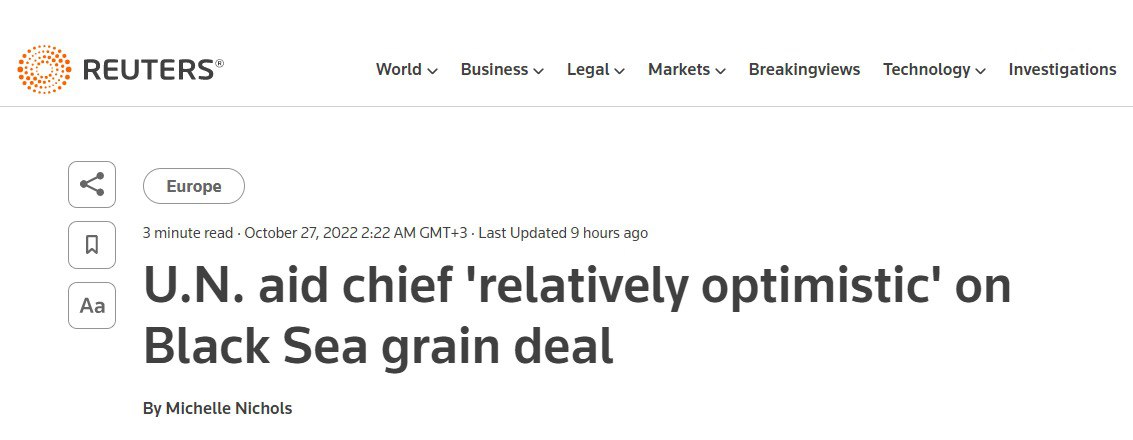11.15 В ООН выражают оптимизм в отношении продолжения действия "зернового соглашения" и допускают привлечение к нему Николаевского порта.