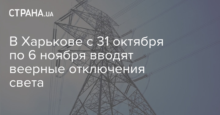 В период с 31 октября по 6 ноября в Харькове вводят веерные отключения света. Об этом сообщает "Харьковоблэнерго".