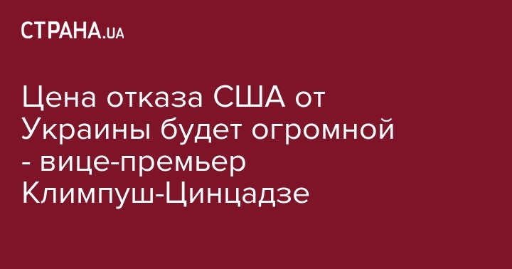Вице-премьер-министр по вопросам европейской и евроатлантической интеграции Украины Иванна Климпуш-Цинцадзе заявила, что разрыв США с Украиной в угоду РФ подорвет доверие международного сообщества к гарантиям безопасности. Об этом сообщает "Украинская Правда".
