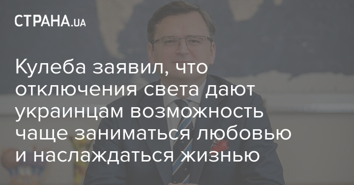 Кулеба заявил, что отключения света дают украинцам возможность чаще заниматься любовью и наслаждаться жизнью