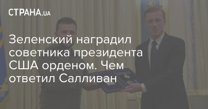 Президент Украины Владимир Зеленский во время встречи с советником президента США по нацбезопасности Джейком Салливаном, который прибыл в Киев с необъявленным визитом, вручил ему орден Ярослава Мудрого.