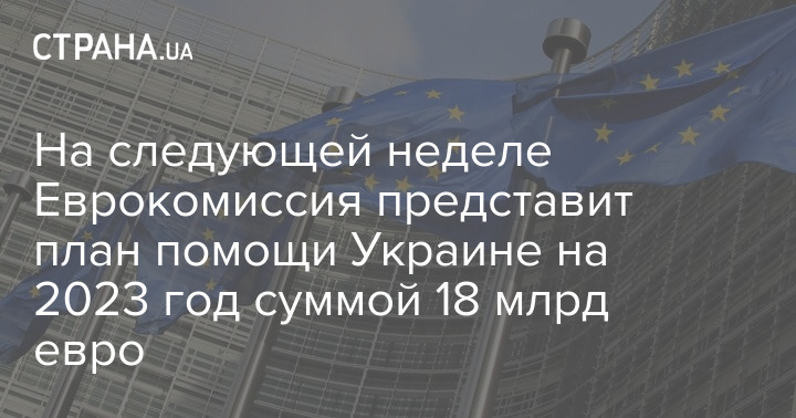 "Председатель Еврокомиссии фон дер Ляйен проинформировала президента Зеленского, что на предстоящей неделе она представит план значительной финансовой помощи со стороны ЕС в размере до 1,5 млрд евро, что в целом составит до 18 млрд евро на покрытие первоочередных потребностей Украины в 2023 году. Помощь будет предоставлена в виде очень льготных долгосрочных кредитов и будет способствовать реформам на Украине, необходимым на пути к вступлению в ЕС", — говорится в заявлении ЕК.
