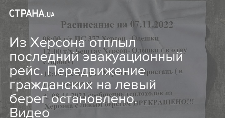 В Херсоне с завтрашнего дня прекращается гражданское сообщение с левым берегом Днепра. Сегодня в 12 часов из города отправился последний эвакуационный рейс.