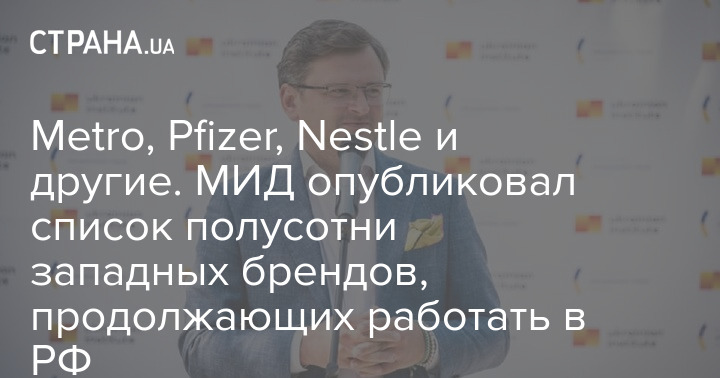 Украинский МИД публикует в Twitter список из 50 западных брендов, которые продолжают работать в РФ.