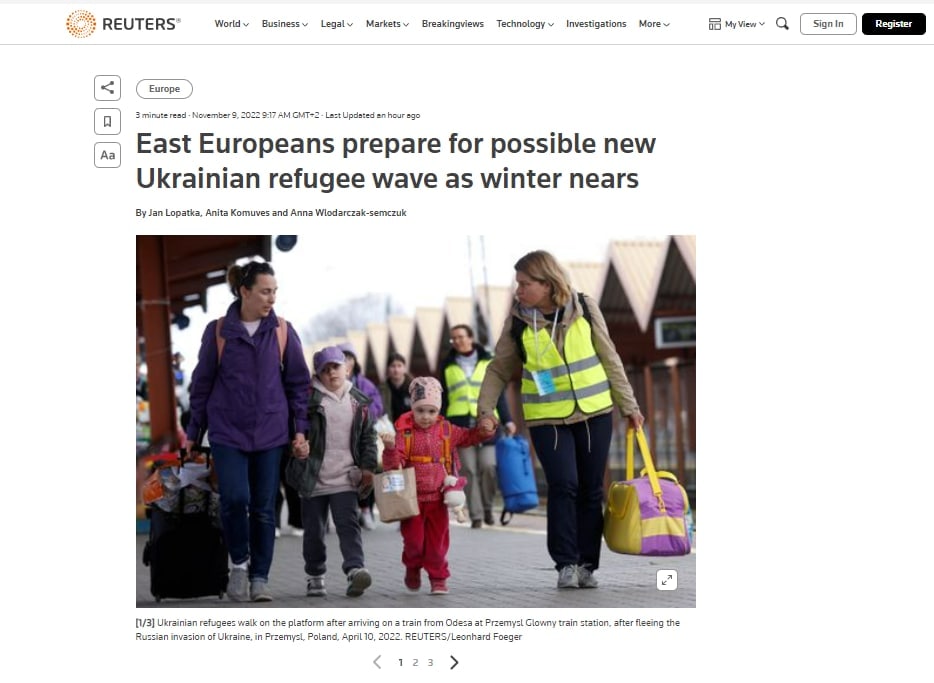 10:22 Из-за атак РФ на объекты энергетики в Украине Восточная Европа готовится к новой волне украинских беженцев с приближением зимы, пишет Reuters.