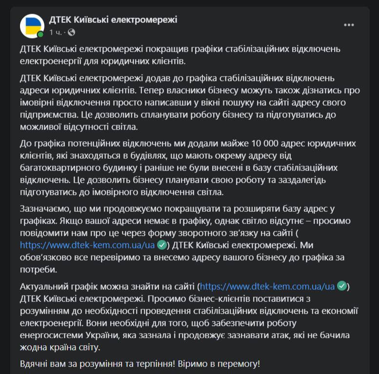 • Сообщил, что веерные отключения света в данный момент идут в 15 областях и Киеве.