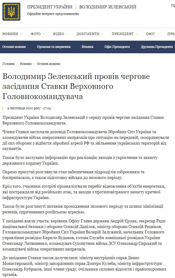 В среду, 9 ноября, в Украине идет уже 259-й день войны с РФ.