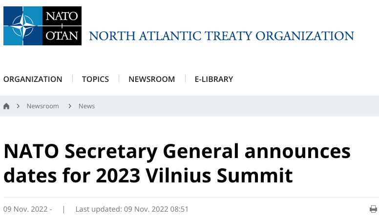 В Вильнюсе в июле 2023 года состоится следующая встреча глав государств и правительств НАТО. Среди тем обсуждения будет и поддержка Украины.
