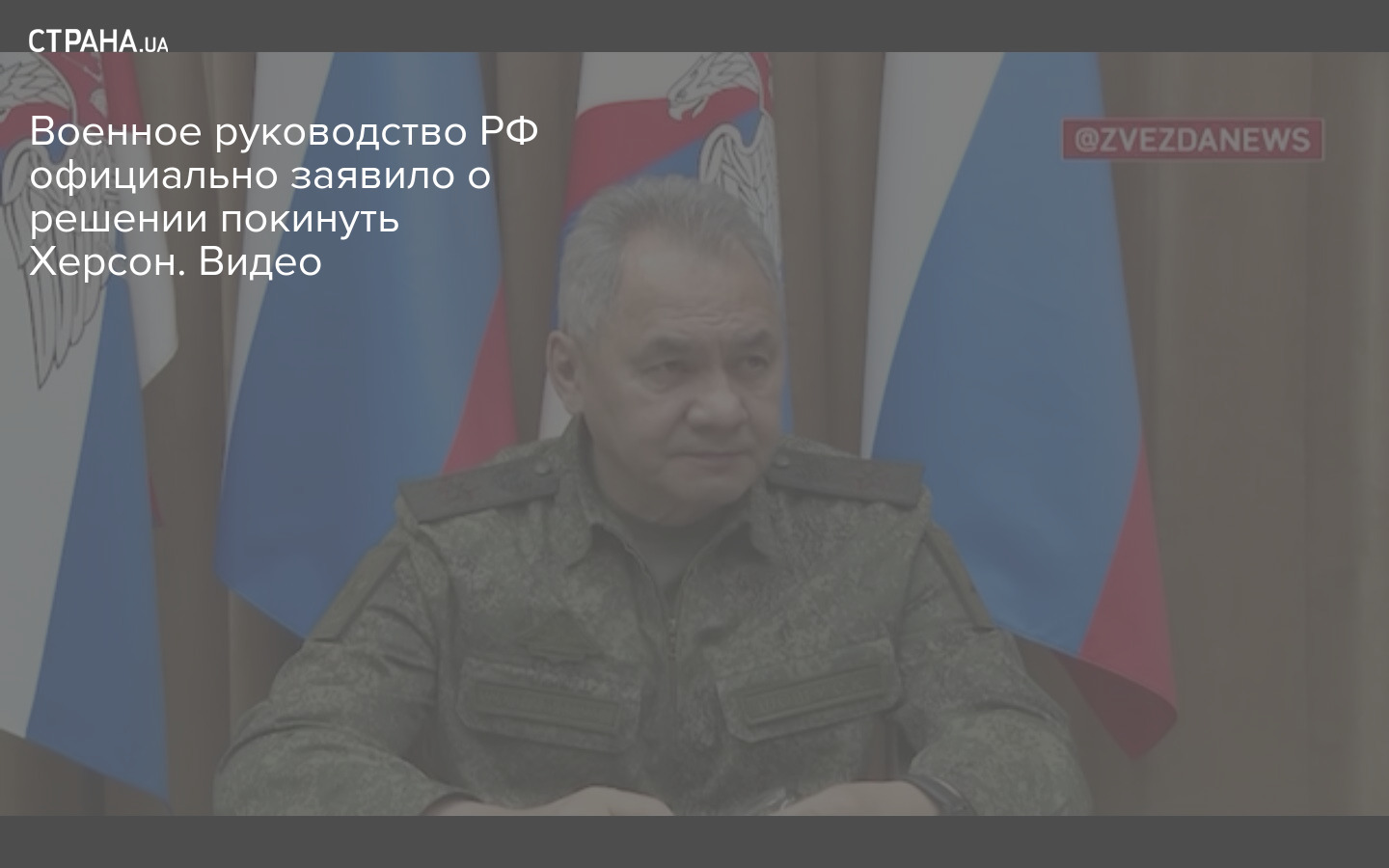 Командующий российскими войсками в Украине Сергей Суровикин предложил министру обороны РФ Сергею Шойгу отвести войска на левый берег Днепра - то есть, из Херсона и всей правобережной Херсонской области. Шойгу предложение поддержал.